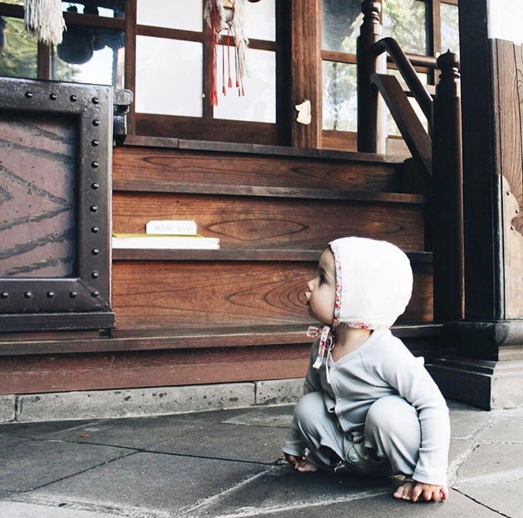 Mountain babe! Could this photo be anymore incredible? Thanks for sharing Danielle, we love seeing your babe in our clothes! She looks great in our Fog Bodysuit